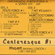 CANTERESQUE COMPILATION - Volume 1 : 1976-86, 1992 (Musart) [tape] POLITE FORCE T-MIT MUSIC DOCTORS |