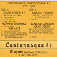 CANTERESQUE COMPILATION - Volume 2 : 1976-89, 1992 (Musart) [tape] POLITE FORCE HOPHEW ENSEMBLE THE HATS STEVE MILLER/MARK HEWINS DALLAS/LONDON QUARTET/QUINTET |